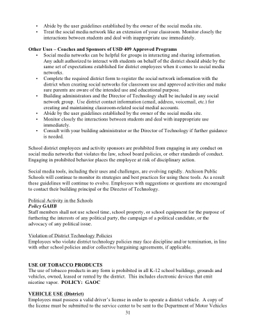social media networks that violates the law, school board policies, or other standards of conduct. Engaging in prohibited behavior places the employee at risk of disciplinary action.