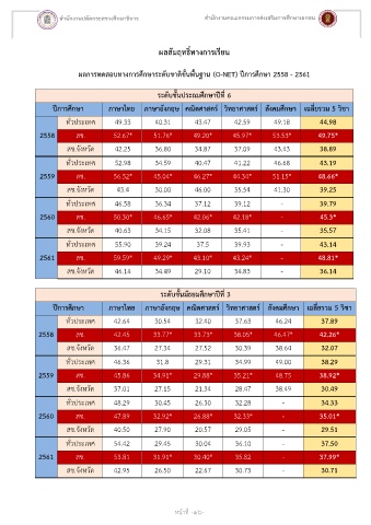 ผลการทดสอบทางการศึกษาระดับชาติขั้นพื้นฐาน (O-NET) ปีการศึกษา 2558 - 2561