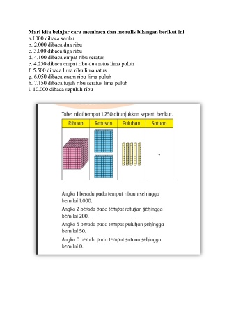 Mari kita belajar cara membaca dan menulis bilangan berikut ini