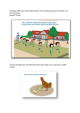 Setelah berolah raga mari kita bernyanyi lagu anak ayam, yang lucu sambil