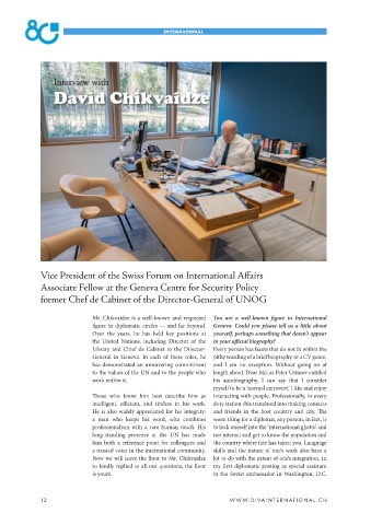 figure in diplomatic circles — and far beyond. Geneva. Could you please tell us a little about international relations, including more than Georgian geographic quota.