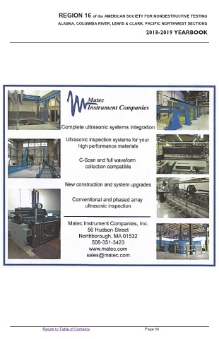 REGION 16 of the AMERICAN SOCIETY FOR NONDESTRUCTIVE TESTING ALASKA, COLUMBIA RIVER, LEWIS & CLARK, PACIFIC NORTHWEST SECTIONS 2018-2019 YEARBOOK Return to Table of Contents Page 50