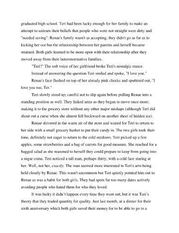 "Teri?" The soft voice of her girlfriend broke Teri's nostalgic trance.