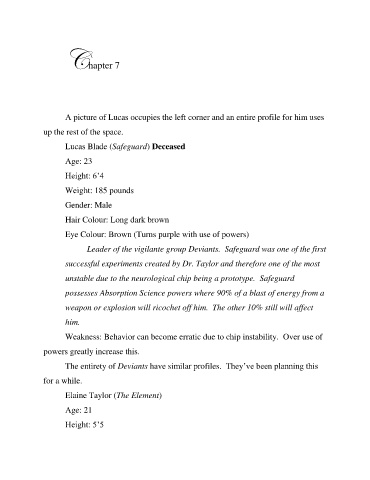 A picture of Lucas occupies the left corner and an entire profile for him uses