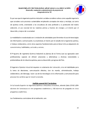 de información y comunicación, la creatividad, el interés por el estudio de la ingeniería química,