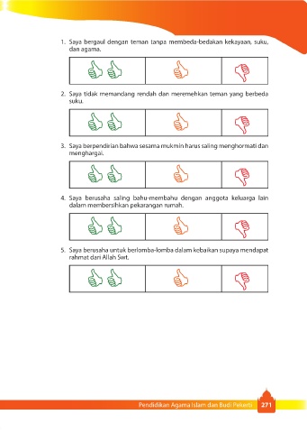 1. Saya bergaul dengan teman tanpa membeda-bedakan kekayaan, suku,