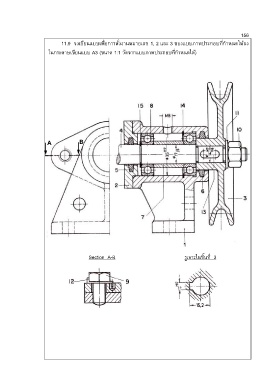 156 11.9 จงเขียนแบบเพื่อการสั่งงานหมายเลข 1, 2 และ 3 ของแบบภาพประกอบที่ก าหนดให้ลง ในกระดาษเขียนแบบ A3 (ขนาด 1:1 วัดจากแบบภาพประกอบที่ก าหนดให้) A B Section A-B รูเจาะในชิ้นที่ 3