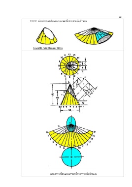 161 12.2.2 ตัวอย่างการเขียนแบบภาพคลี่ทรงกรวยตัดด้านบน Truncate right Circular Cone แสดงการเขียนแบบภาพคลี่ทรงกรวยตัดด้านบน