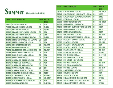 41556 BOK CHOY BABY LOCAL CS 30# 44136 PEP GREEN LOCAL CS 1-1/9BU