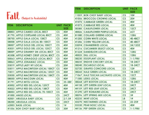 00063 APPLE JONAGOLD LOCAL 80CT CS 40# 08230 EGGPLANT LOCAL CS 1-1/9BU