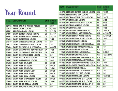 01630 DAIRY YOGURT VANILLA LOCAL TB 5# 09256 MUSH PORT CAPS 6" LOCAL CS 5#