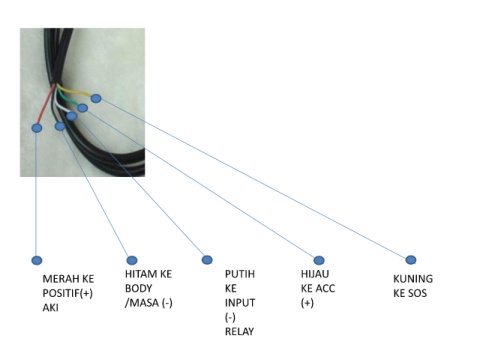 MERAH KE HITAM KE PUTIH HIJAU KUNING BODY KE KE ACC POSITIF(+) KE SOS /MASA (-) INPUT (+) AKI (-) RELAY