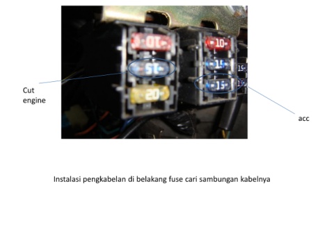 Cut engine acc Instalasi pengkabelan di belakang fuse cari sambungan kabelnya