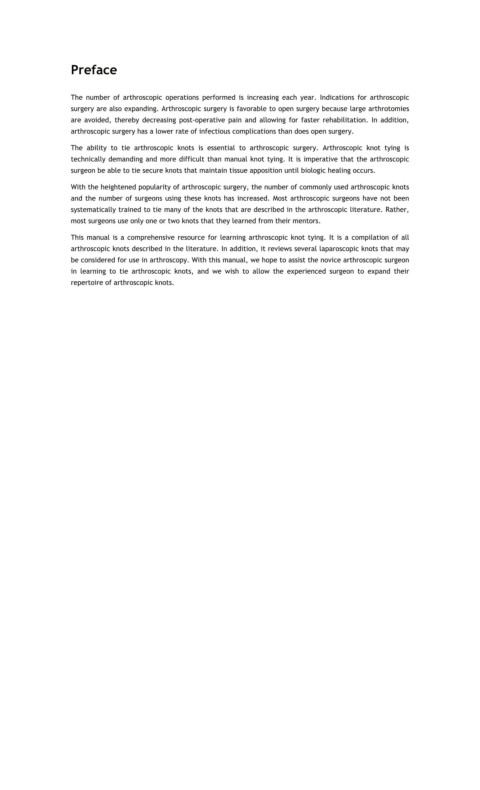 This manual is a comprehensive resource for learning arthroscopic knot tying. It is a compilation of all