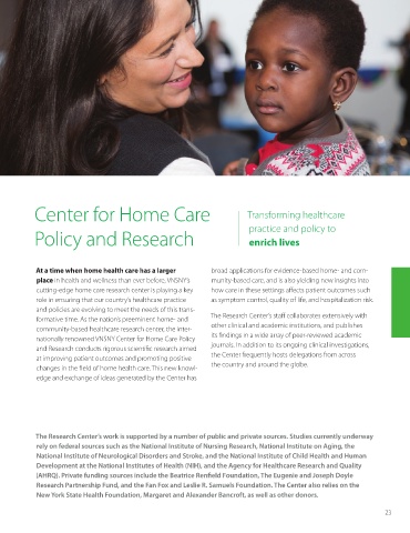 nationally renowned VNSNY Center for Home Care Policy its findings in a wide array of peer-reviewed academic