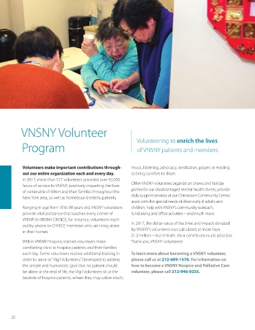 hours of service to VNSNY, positively impacting the lives Other VNSNY volunteers organize art shows and holiday