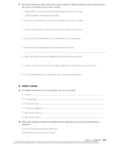 7 Read the sentences. What does each person wish for? Write a sentence about each person.