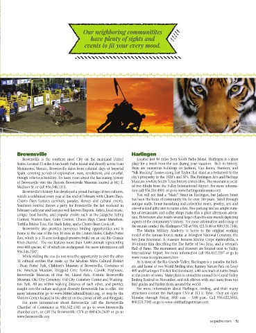 Brownsville’s history has developed a proud heritage of two cultures, tion call 956.216.4901 or go to www.harlingenmuseum.com