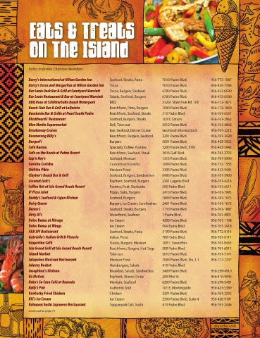 F&B SPI Restaurant Seafood, Steaks, Pasta 3109 Padre Blvd. 956-772-8114