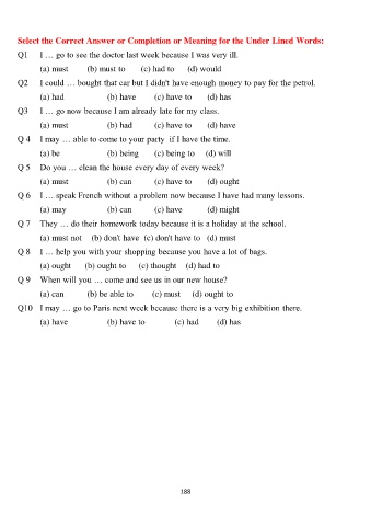 Select the Correct Answer or Completion or Meaning for the Under Lined Words: