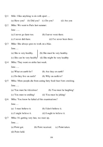 (a) Have you? (b) Did you? (c) Do you? (d) Are you