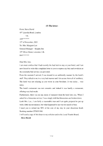 (5) The letter: