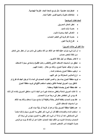 • عدم تغطية منطقة الحروق بأية مراهم أو الزبدة أو بأية مواد أخرى