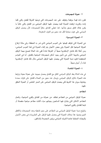 المنخفضة فتزيد نسبة العمكلة التي يحصؿ عمييا الككيؿ السياحي مثاؿ ذلؾ فنادؽ الإسكندرية