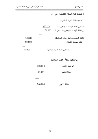 أمثلة لقوائم التكاليف في المنشآت الفندقية الفصل الثامن