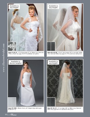White or Black. See pages 45-47 for additional veil options. Ivory, Diamond White. See pages 45-47 for additional veil options.