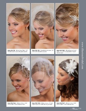 Style #VS-780 - White, Ivory, Black. 18” Style #VS-789 - Available in all colors. 18” Style #VS-7002 - White/Silver or Ivory/ www.illusionsbridal.com