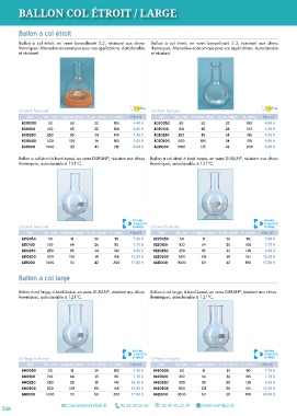 Ballon à col étroit, en verre borosilicaté 3.3, résistant aux chocs Ballon à col étroit, en verre borosilicaté 3.3, résistant aux chocs