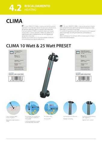 Il termoriscaldatore CLIMA è un prodotto adatto per acquari It is suitable for aquariums, turtle tanks and vivariums and is equipped