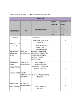 4.1.4 PERSONAL INVOLUCRADO EN EL PROYECTO