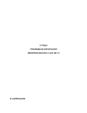 II TITULO “PROGRAMA DE EXPORTACION” INDUSTRIAS BACHOCO, S.A.B. DE C.V III JUSTIFICACIÓN