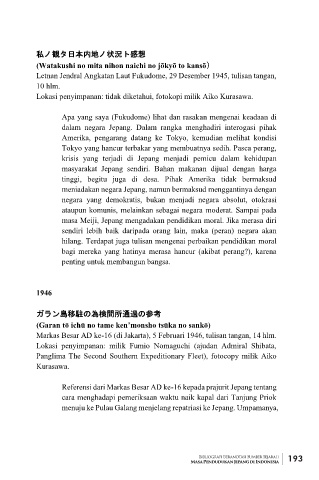 Letnan Jendral Angkatan Laut Fukudome, 29 Desember 1945, tulisan tangan,