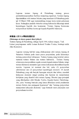 Laporan tentara Jepang di Palembang tentang proses