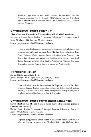 dan “Laporan bisnis Borneo Shinbun-Sha, tahun fiskal 1942” (tulisan