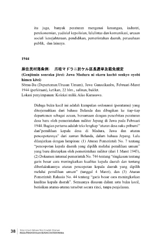 1944. Bagian pertama adalah teks lengkap “aturan desa suku pribumi”