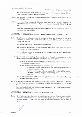 ARTICLE II.II SUBCONTRACTING OF TASKS F'ORMING PART OF THE ACTION