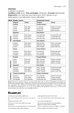 Auxiliary verb: avere Past participle: informato Gerund: informando