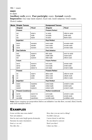 Imperative: (tu) osa (non osare); (Lei) osi; (noi) osiamo; (voi) osate;