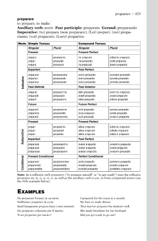 Auxiliary verb: avere Past participle: preparato Gerund: preparando