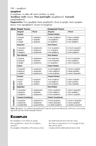 Auxiliary verb: essere Past participle: spogliato(si) Gerund: