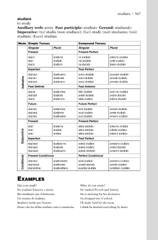 Auxiliary verb: avere Past participle: studiato Gerund: studiando