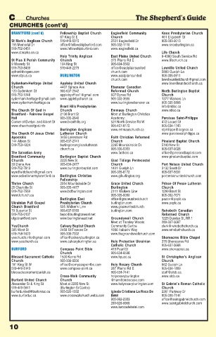 BRANTFORD (cont’d) Fellowship Baptist Church Eaglesfield Community Knox Presbyterian Church