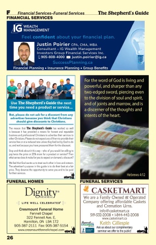 F F F F F Financial Services–Funeral Services The Shepherd’s Guide FINANCIAL SERVICES FUNERAL HOMES FUNERAL SERVICES 26