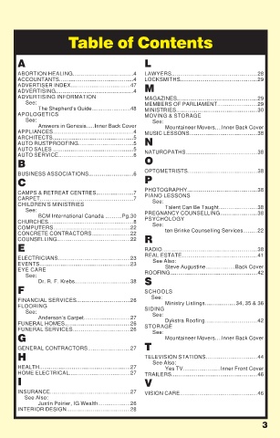 FINANCIAL SERVICES................................26 Ministry Listings...................34, 35 & 36
