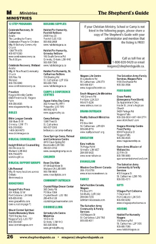 26 www.shepherdsguide.ca • niagara@shepherdsguide.ca