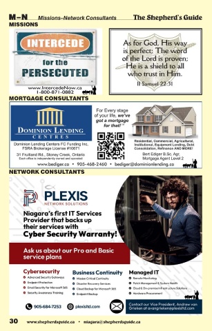 M–N M–N M–N Missions–Network Consultants The Shepherd’s Guide M–N M–N MISSIONS MORTGAGE CONSULTANTS NETWORK CONSULTANTS 30 www.shepherdsguide.ca • niagara@shepherdsguide.ca